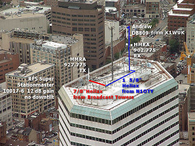 ![]() The MMRA 927.0625 Boston repeater is located atop One Financial Center in Boston. The repeater is full-time linked to the New England Reflector 900MHz channel - IRLP 9125. It takes a brief break from this on Tuesday nights at 8PM when it joins the MMRA network for the club's weekly net. |