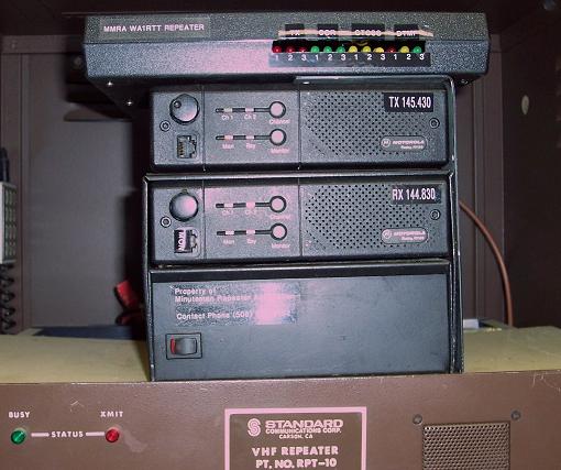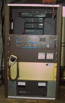 Versions 0 & 1 The Belmont repeater was originally built and operated by WA1TFJ & WA1RTT in the 1980's. This equipment ran for over twenty years, but began to falter in the early 2000's. In 2004, the Crocker Public Service Group took over maintenance of the equipment and later that year replaced the Vertex-Standard repeater with Motorola transceivers and an Arcom controller. In the photo to the left, you can see the older Vertex repeater which is no longer functional. The Motorola equipment, controlled by an Arcom RC-210 sits on top of it. The 200W Vocom paging amplifier (located below the Vertex repeater) is still running strong. CPSG dissolved on November 27, 2007 and became part of MMRA. MMRA continued to operate this repeater standalone with the original trustee's callsign WA1RTT until Larry's passing in May 2012. At that time, the coordination was transferred to the club callsign W1MRA. In September 2013, MMRA purchased the Vocom amplifier, duplexers, preselectors, and repeater cabinet from Larry's estate. MMRA now owns the entire repeater with the exception of the feedline, tower, and antenna. |