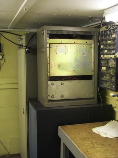 The 29.68 repeater operates split site, with its receiver at the MMRA Weston Site, and the transmitter here at Marlborough East. For more information about the receiver, see our page on Weston. The 29.68 transmitter is a GE MASTR II base station. The base station includes