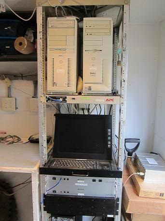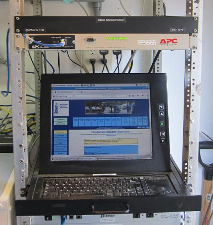 Since the early to mid 2000's, two IRLP nodes have operated from this site. The current nodes are based on Raspberry Pi Model B processor boards and are contained in the black 1U cabinet above the APC power controller. They were placed in service in 2016 and replaced the 1990's era "White Box" PCs on which the original nodes were built. Photo of original nodes. |