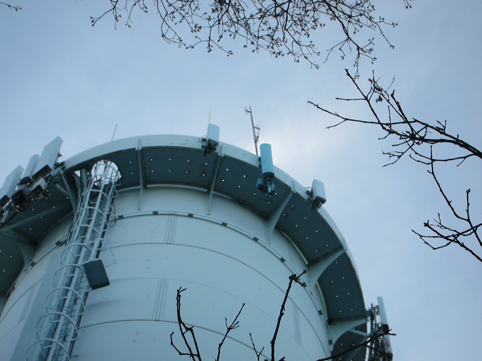 | MMRA's North Reading site is atop a water tower. The two repeaters' antennas - a DB224 for two meters and an FG4405 for 440 are at the top of the water tower, as well as a corner reflector for linking. |